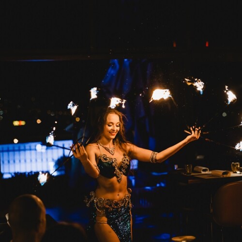Experience the hypnotic allure of fire as it intertwines with the ancient art of belly dance. Adorned in vibrant fabrics, the dancer’s graceful movements command flames to dance in perfect harmony, creating a mesmerizing spectacle of skill and passion that captivates the audience from start to finish.