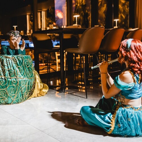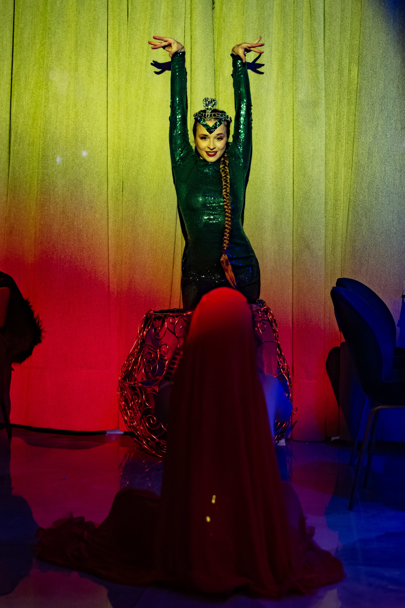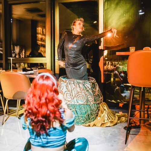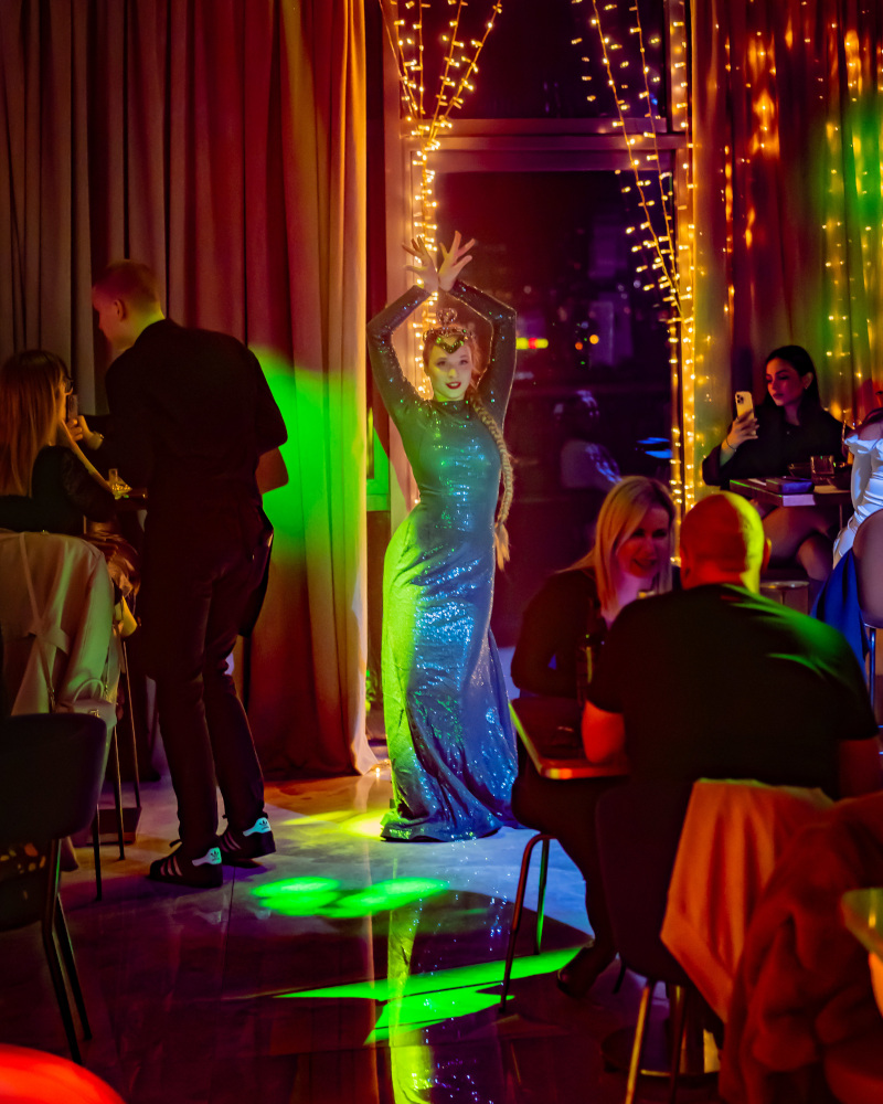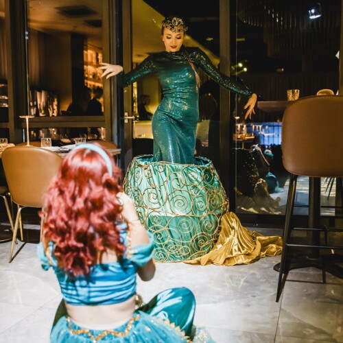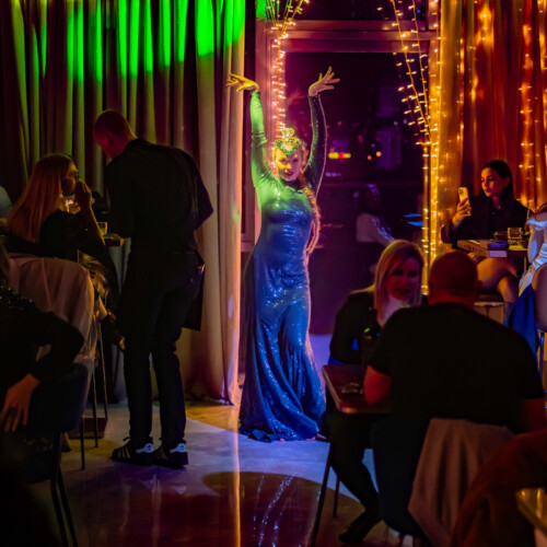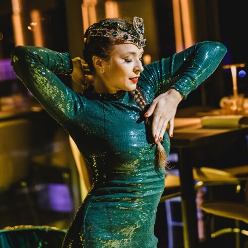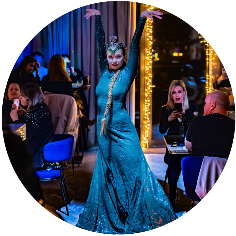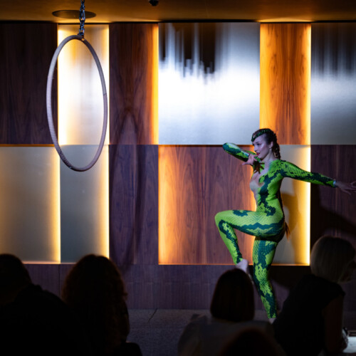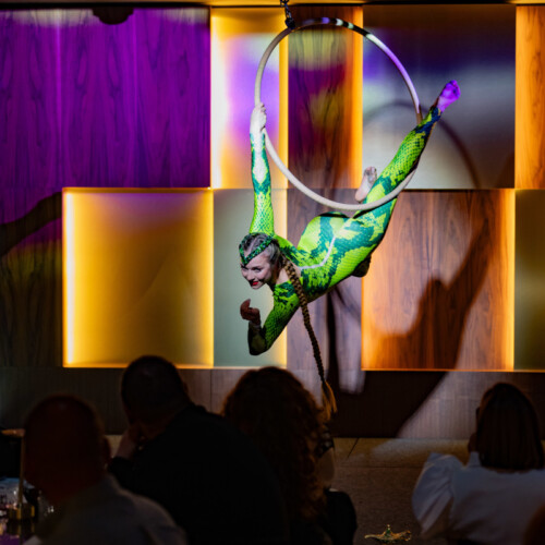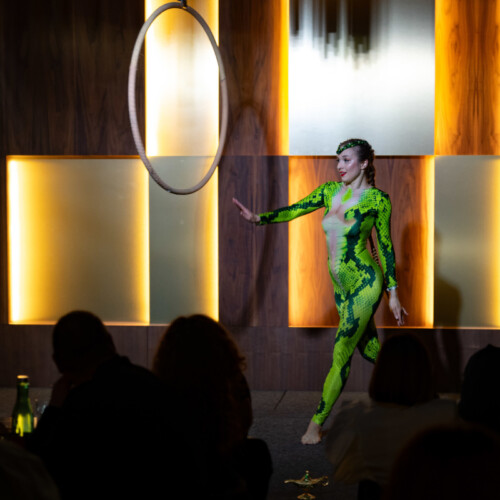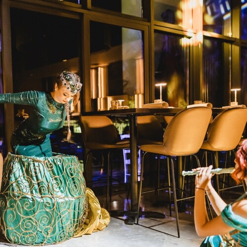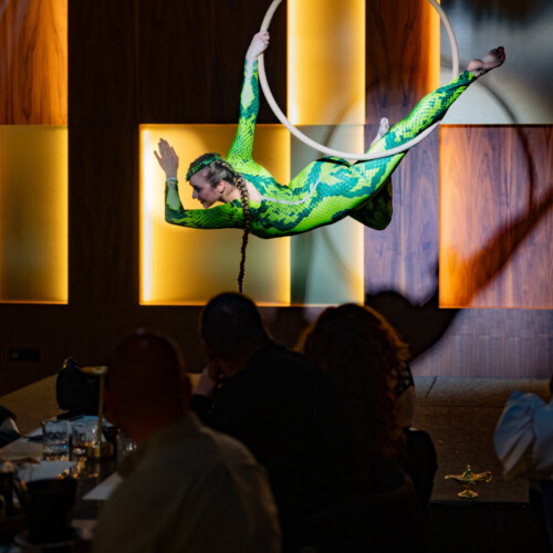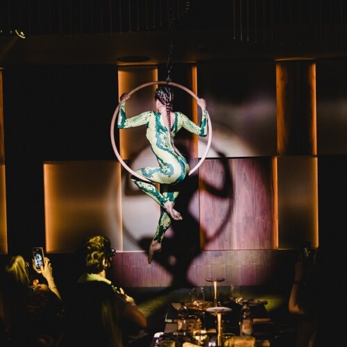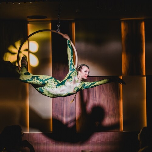 Because the act combines dance and aerial elements, the venue must allow proper aerial rigging and sufficient stage space.