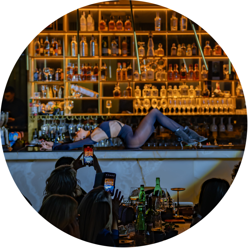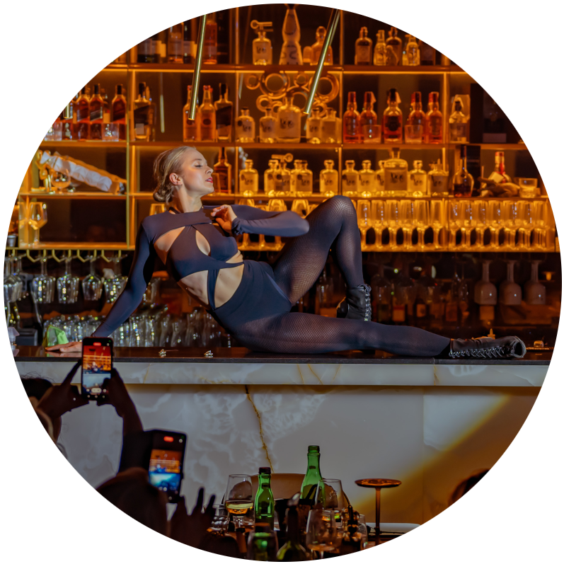 When the performance starts in the middle of the venue rather than on stage, it immediately catches attention and creates a strong connection with the audience. The choreography moves between elegant poses and playful cabaret movement while the music sets a nostalgic mood.