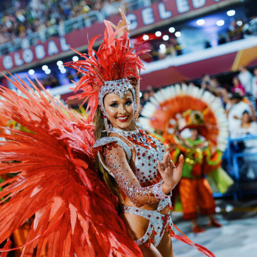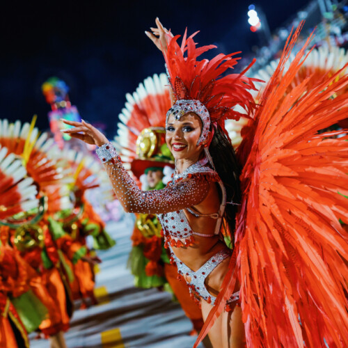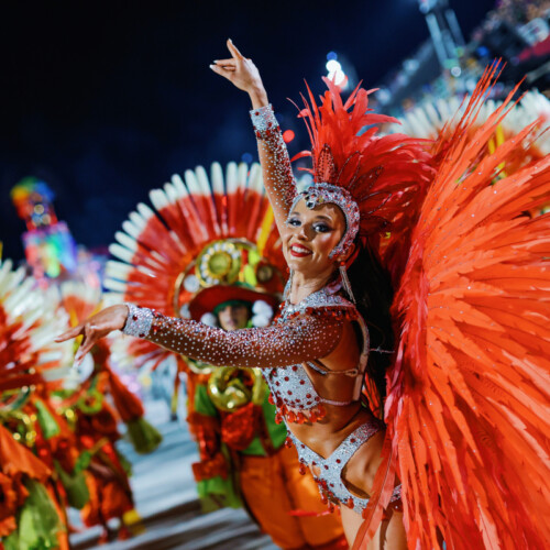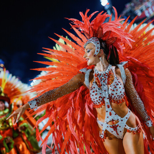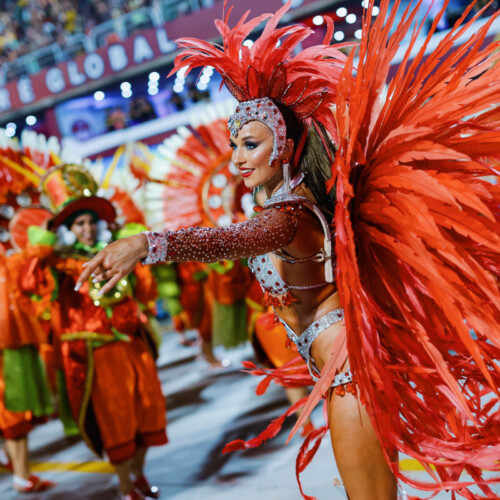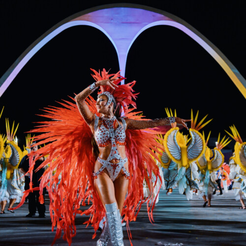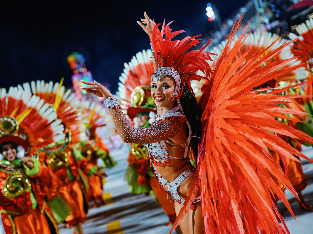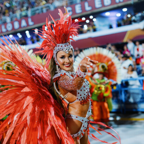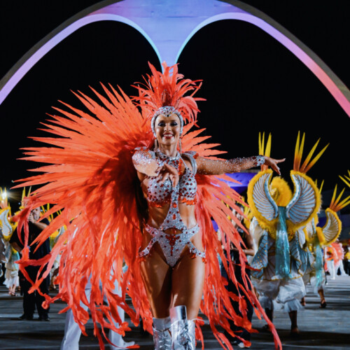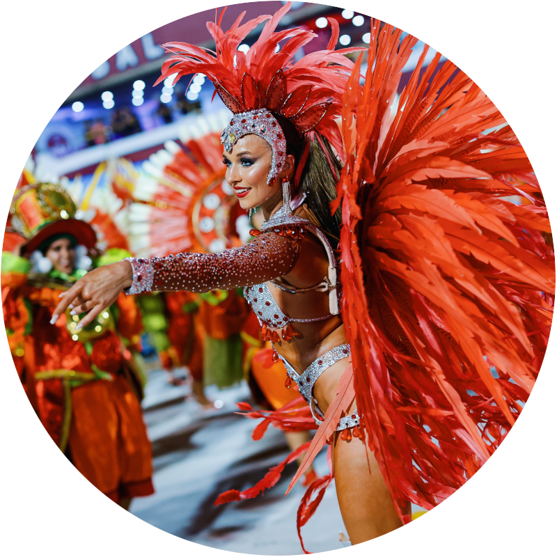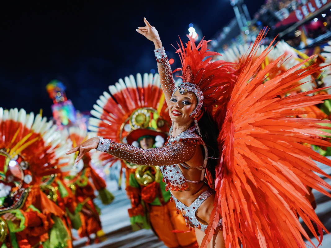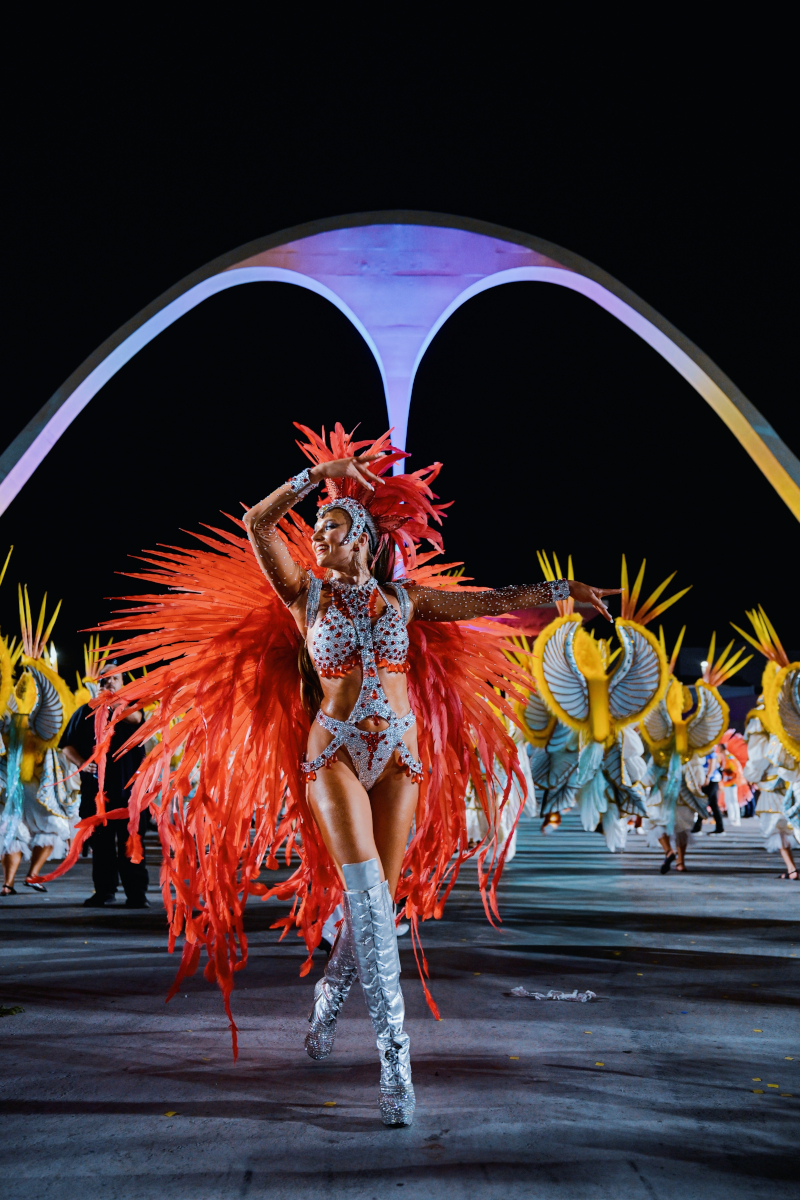 The choreography celebrates authentic Brazilian samba energy with fast footwork and vibrant rhythm, making the performance feel like a piece of Rio Carnival transported directly into the event.