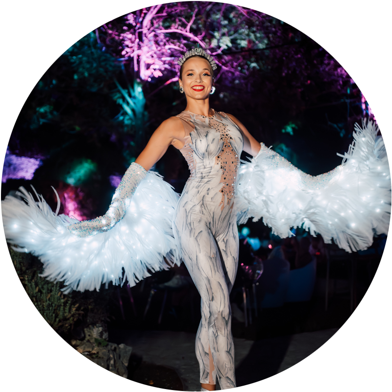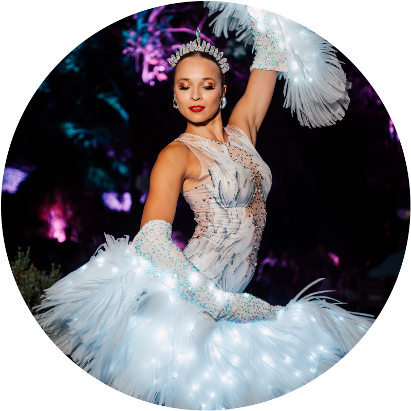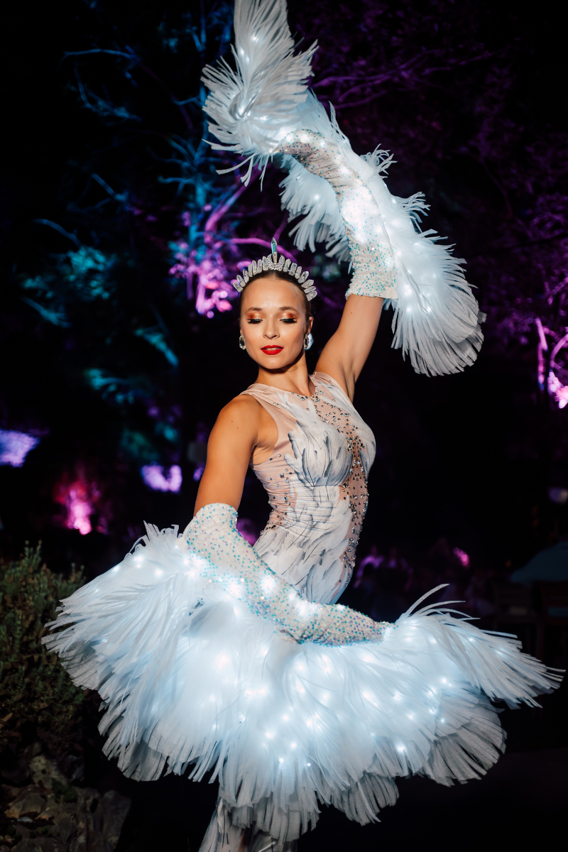 Swan works especially well in artistic stage programs and elegant events where a refined visual style fits the environment.